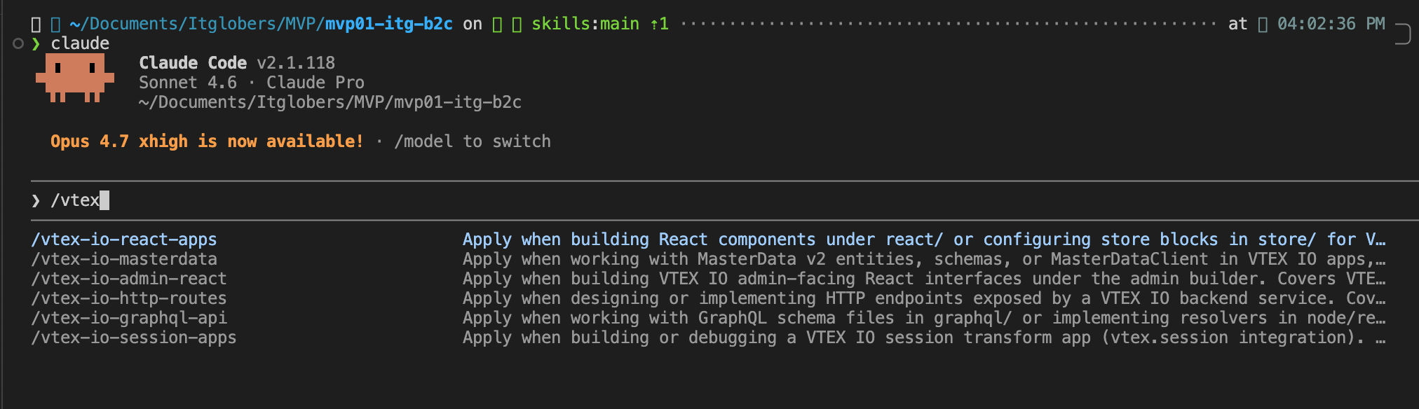 Si el MCP está activo, verás que Claude consulta la documentación en tiempo real. Si las Skills están activas, las respuestas incluirán restricciones específicas de VTEX (como los headers requeridos en PPP) sin que tú las hayas mencionado.