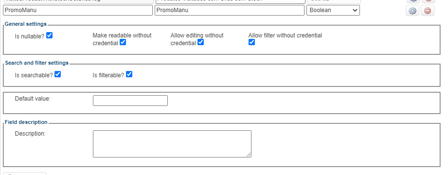 Creamos entonces un campo en la entidad de cliente (CL) de tipo boolean y le damos los respectivos permisos. Publicamos y reindexamos la entidad para que tome nuestro cambio.