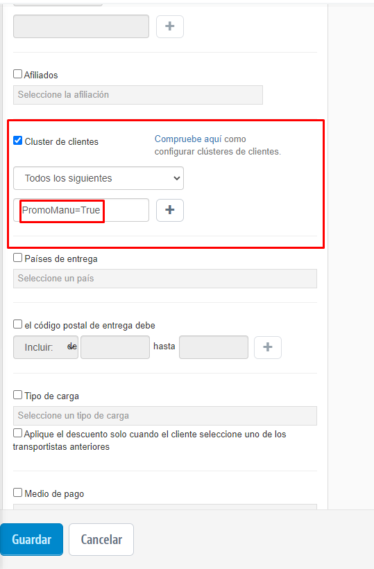 PROMOCIONES CON CLUSTER DE CLIENTES VTEX.