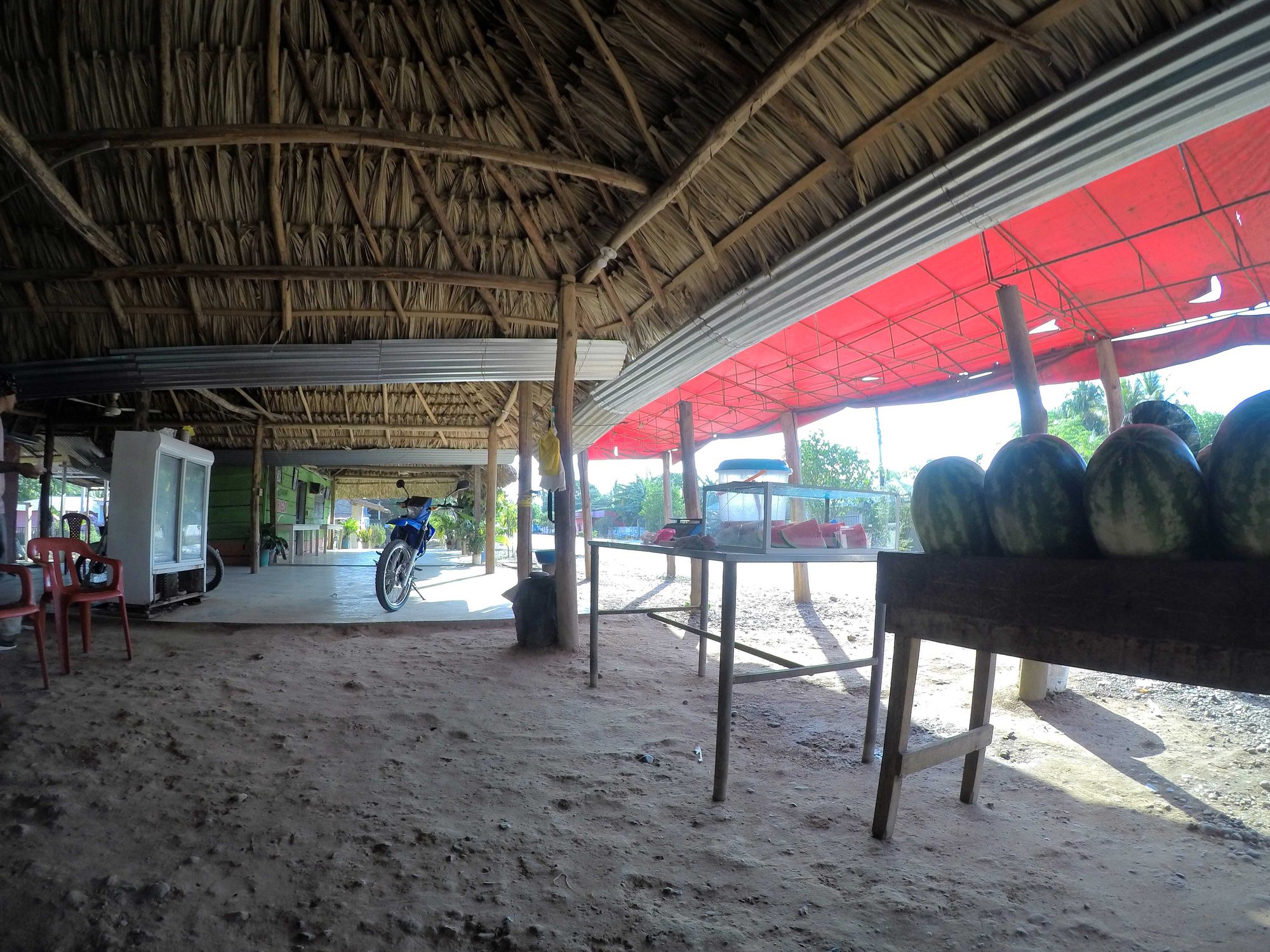 El negocio lo montó con su esposa o novia. Pensé en decirle que colocara un letrero para que la gente recordara el lugar y luego vendiera franquicias con su manera peculiar de hacer jugo de patilla. Pero él es feliz así, y a veces, también eso está bien.