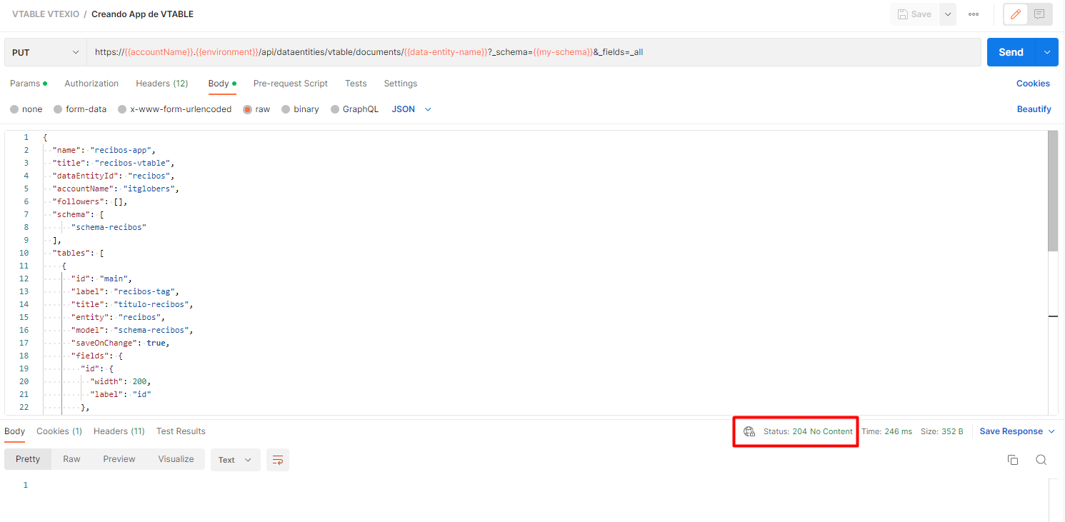 }Luego de tener construido nuestro JSON Schema debemos hacer un PUT al siguiente endpoint de VTEX: